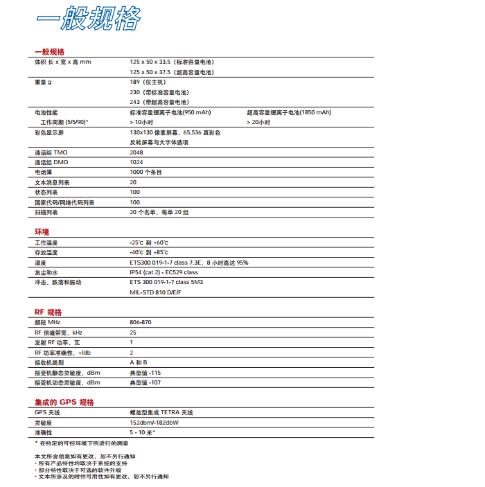 每款摩托罗拉 TETRA 终端机型都经过了严格的摩托罗拉加速老化试验,该试验模拟长达 5 年的现场苛刻使用条件;这些严格的测试确保 MTP850 符合某些最高级的坚固性军用标准。
