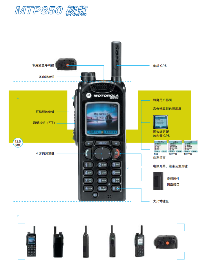 通信需要快速而高效,设计 MTP850 具有较大的紧急呼叫按钮和带有通话按键,用于提高操作效率。此外,其 12.5 厘米的高度确保无论是将它别在皮带上还是挎在肩上,都可轻松配带。