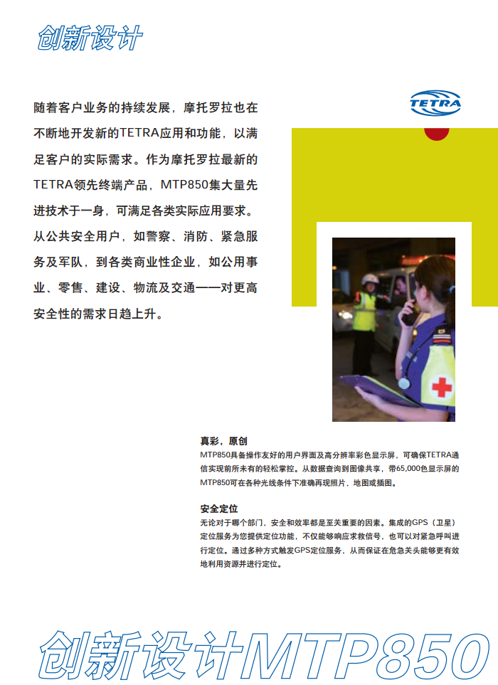 客户的通信需求在不断增长,这就需要提高通信质量,以保护员工的安全及针对紧急事件快速作出响应。为了满足客户的这些要求,摩托罗拉开发了 MTP850,这款设备提供了大量新的和经过验证的功能。