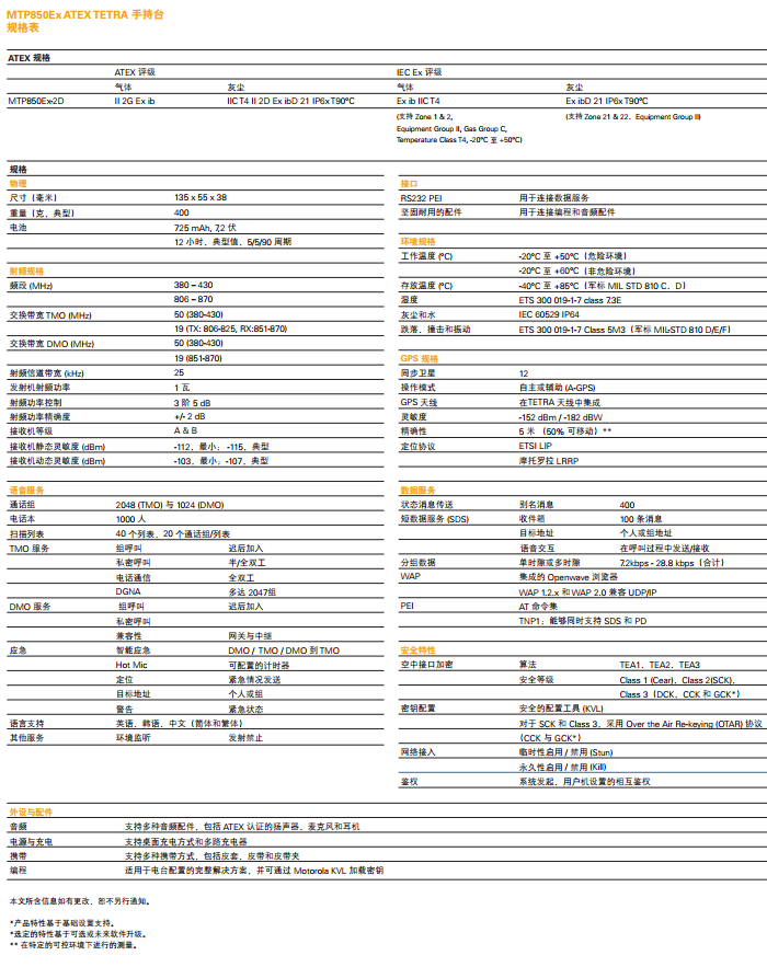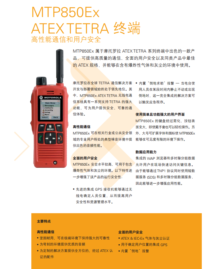 可提供高质量的通信、全面的用户安全以及同类产品中最佳 的 ATEX 规格,并能够在含有爆炸性气体和灰尘的环境中使用